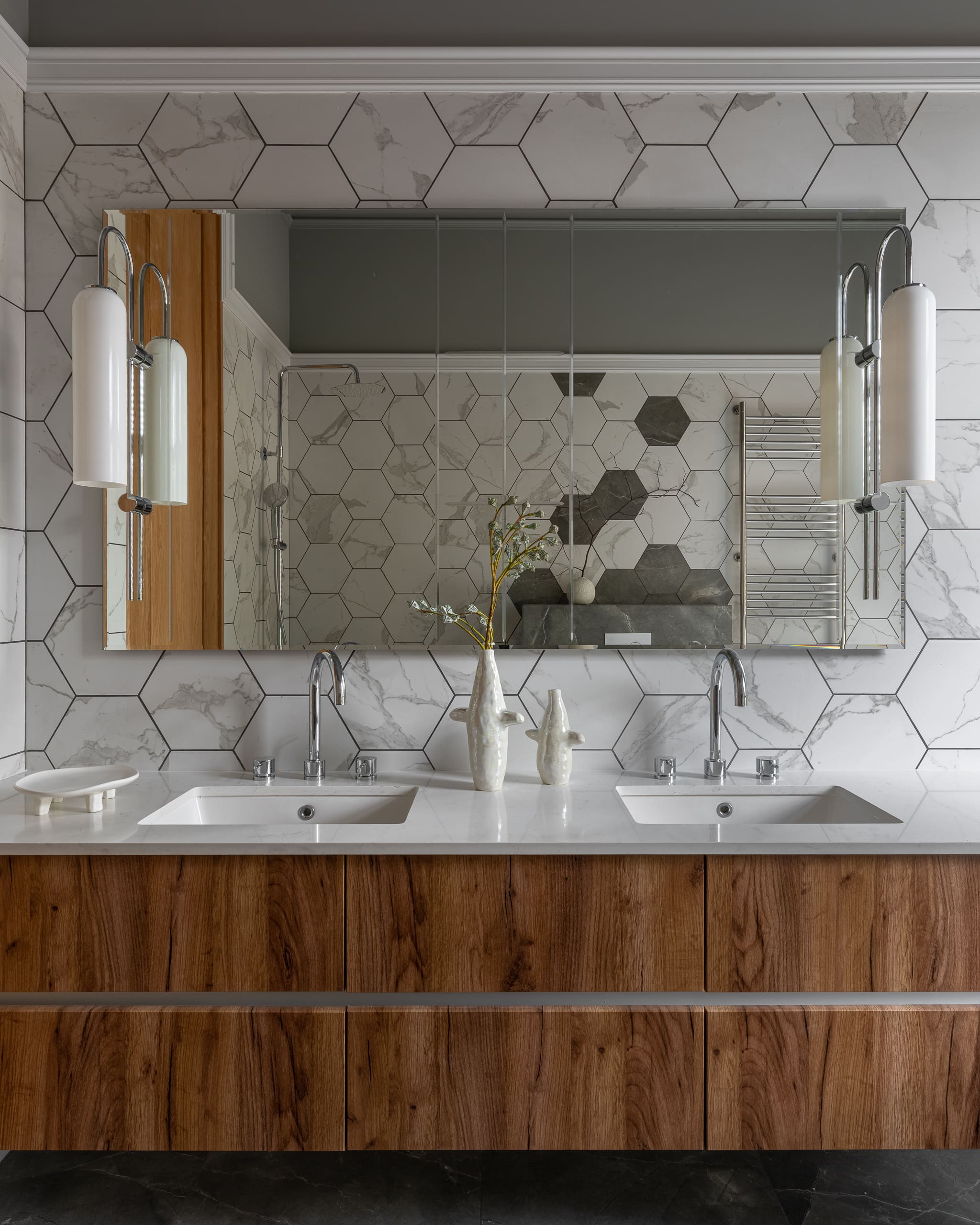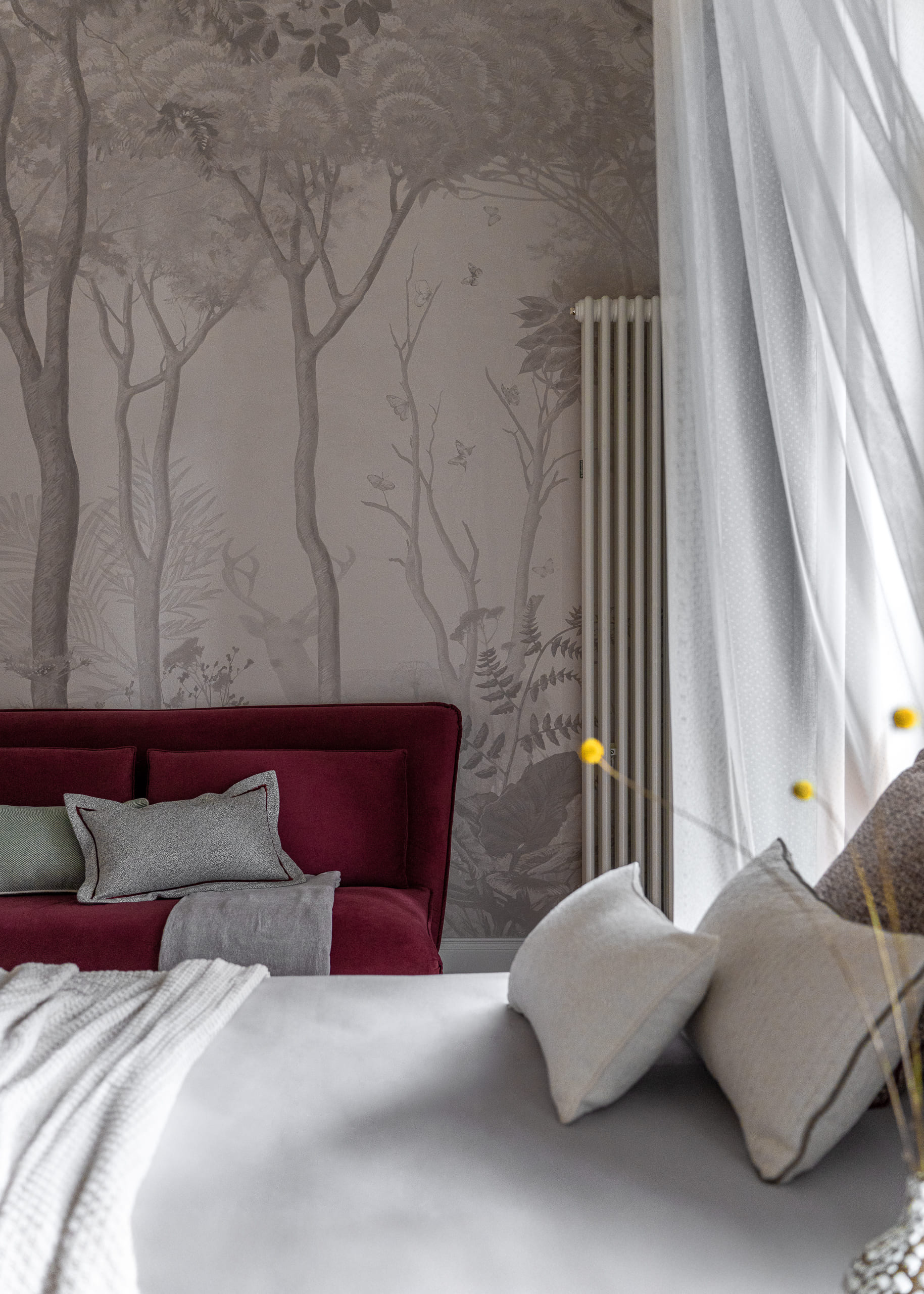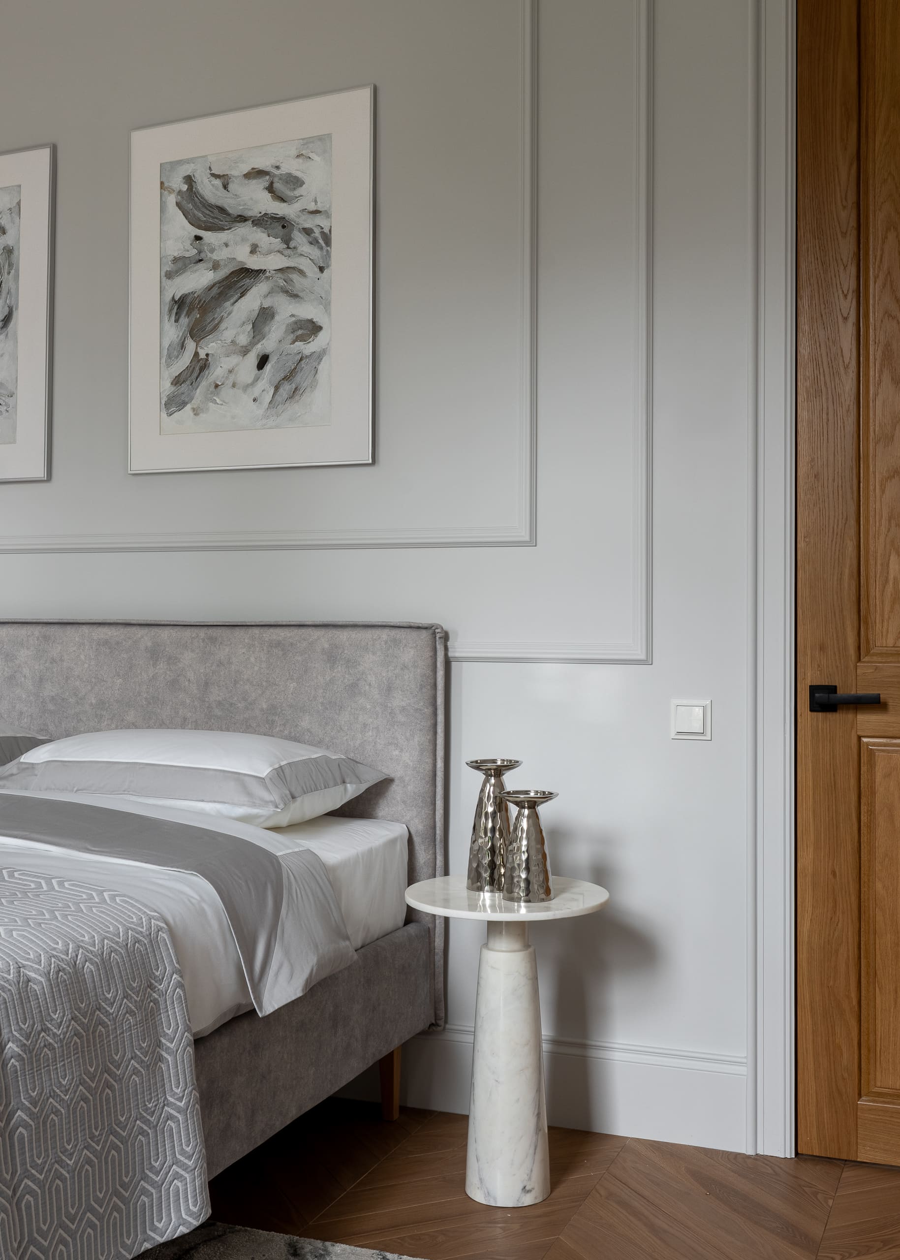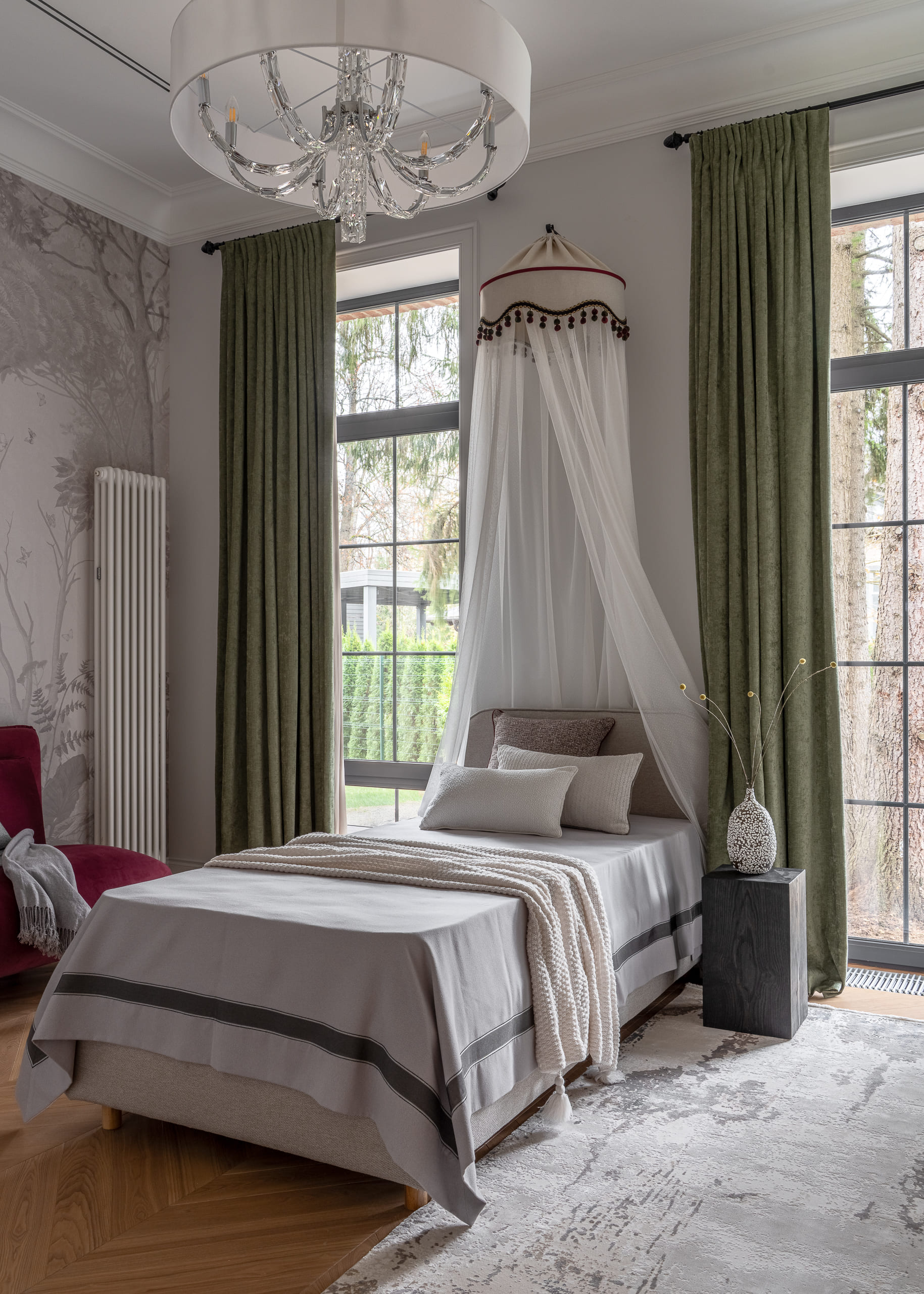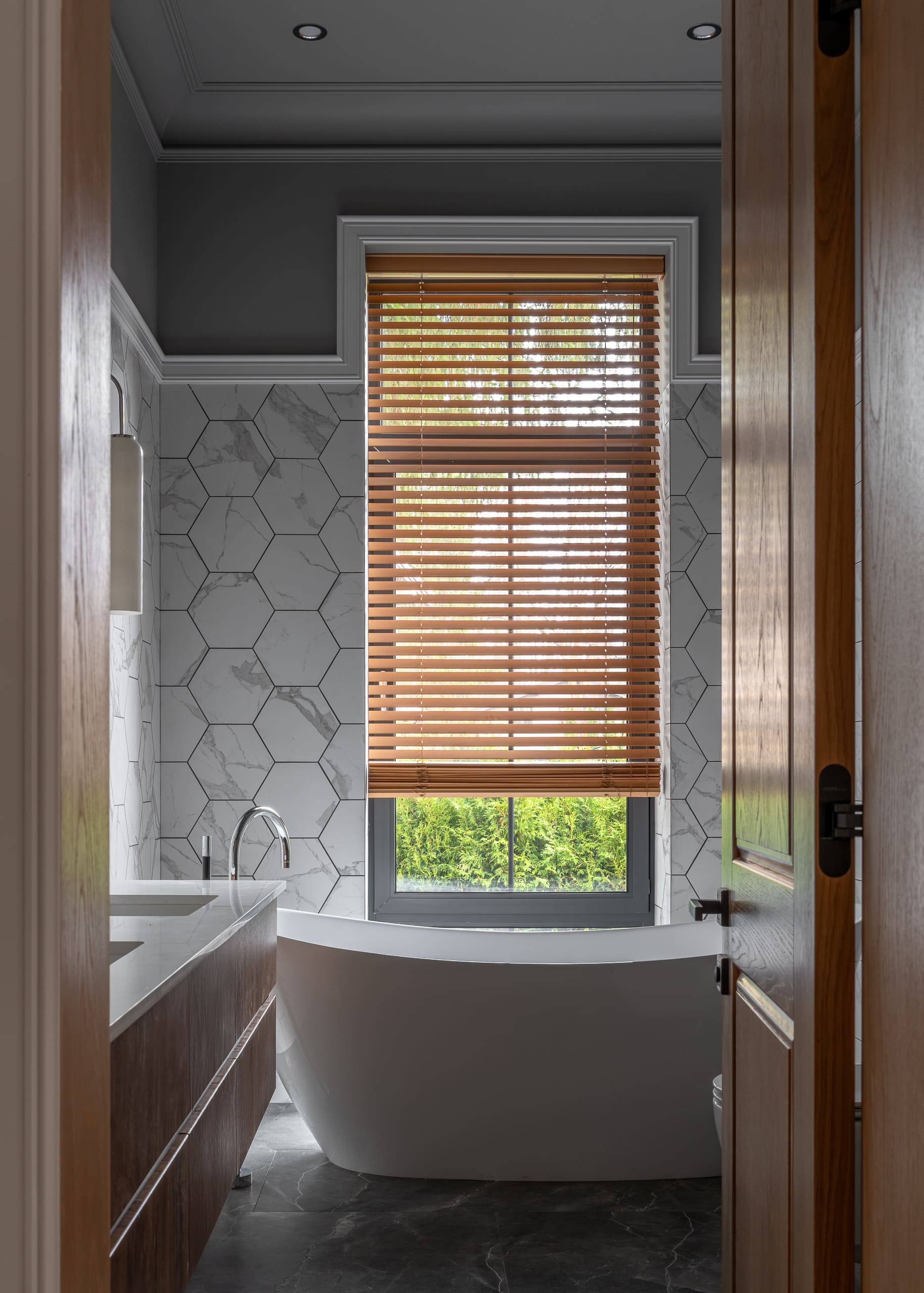 Цветовая палитра отделки варьируется от тёмно-коричневого до пастельных оттенков, создавая ощущение уединения и уюта.