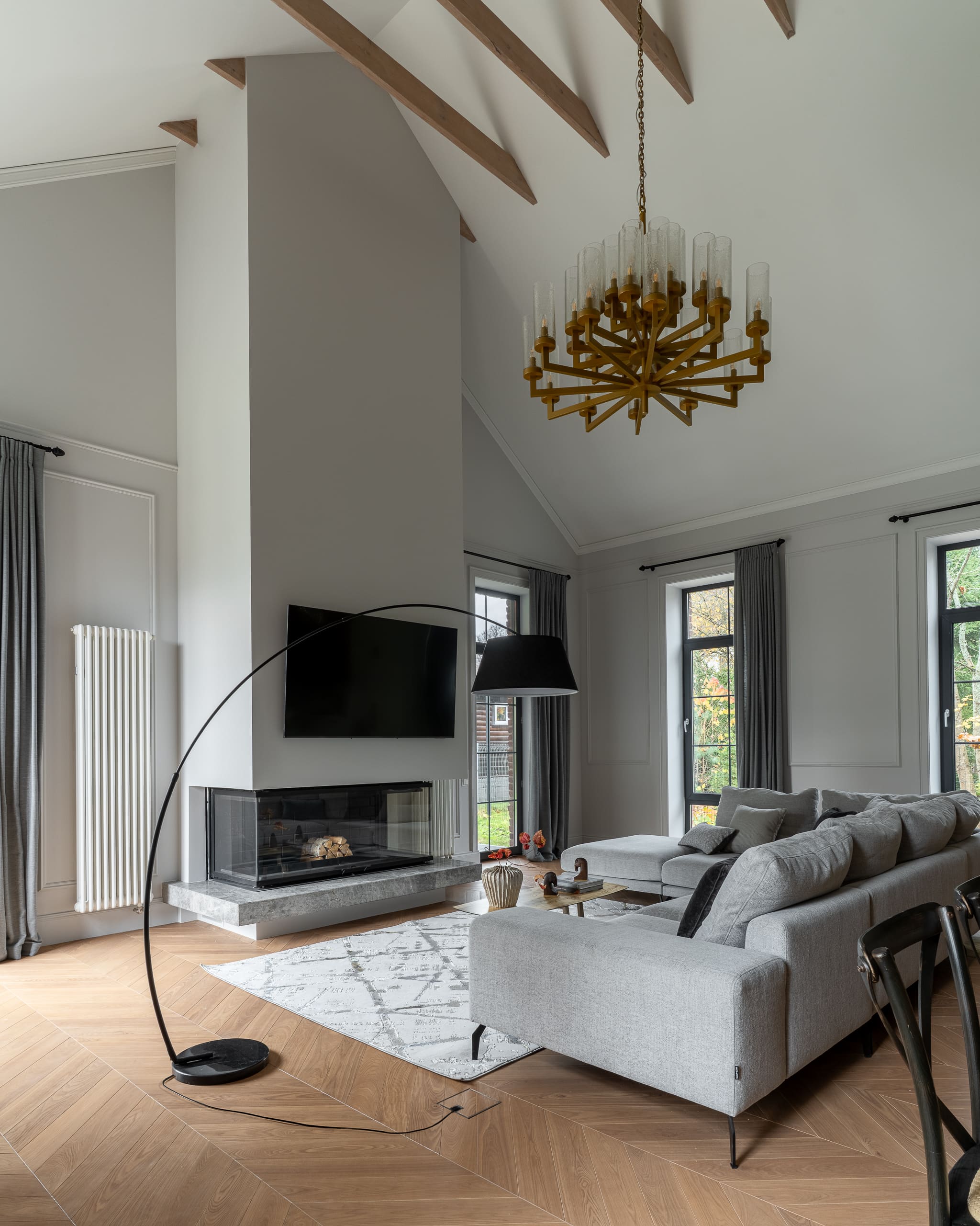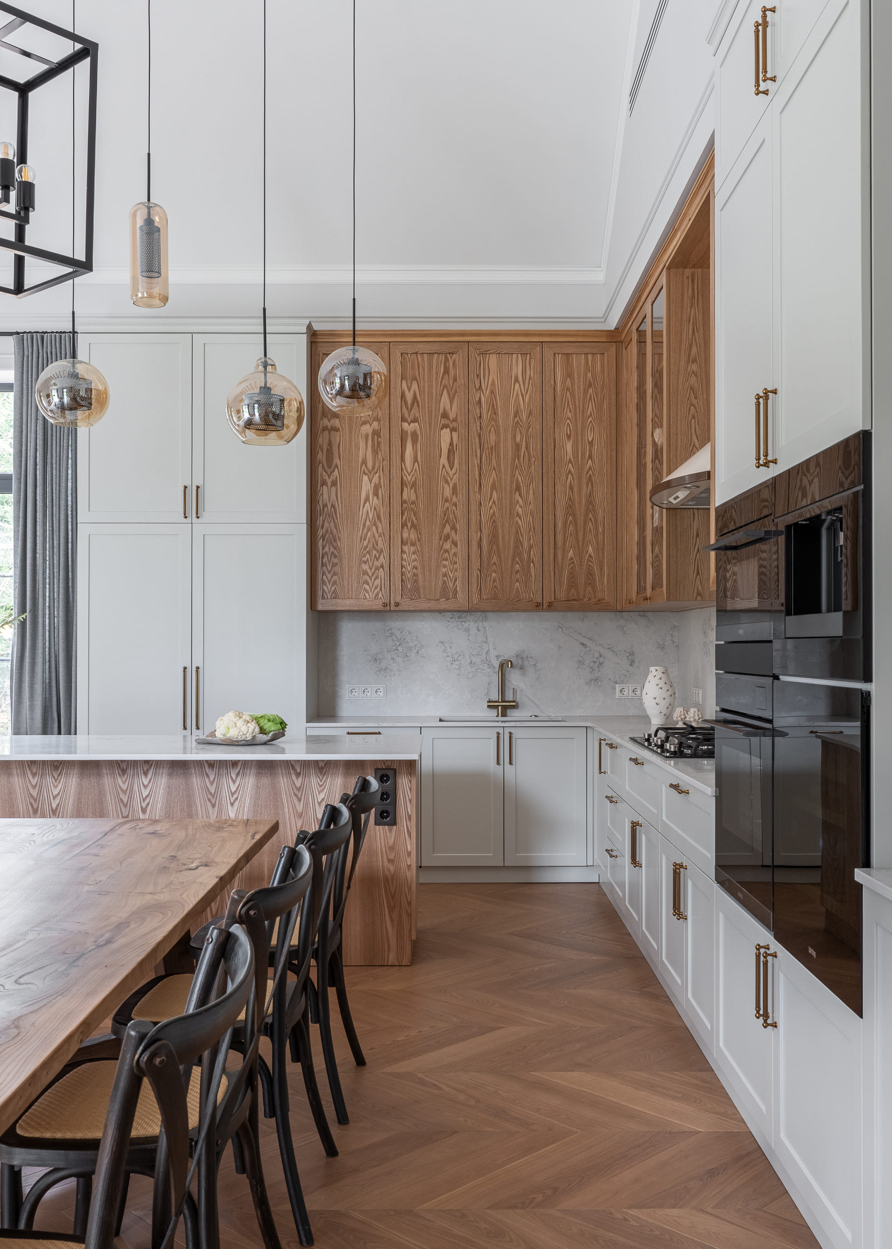 Принципы планировки, основанные на уюте и функциональности, создают тёплую, приветливую атмосферу. Внутреннее пространство организовано так, чтобы поддерживать связь между комнатами, при этом сохраняя возможности для уединения. Обилие деревянных элементов в интерьере и классическая мебель усиливают ощущение комфорта.