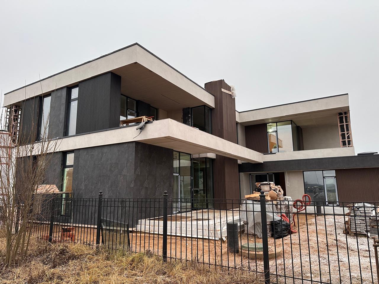 Данный проект находится на стадии монтажа инженерных систем, а так же внутренней отделки. Большая площадь остекления, удобный въезд на участок через свой гараж с дополнительным местом для парковки собственного катера (не зря же участок выбран рядом с водохранилищем). Так же предусмотрено уютное пространство для барбекю зоны на террасе, для комфортной эксплуатации заранее был предусмотрен вывод дымоход в крышу. Сроки строительство коробки дома и гаража с остеклением и фасадом 4,5 месяца.