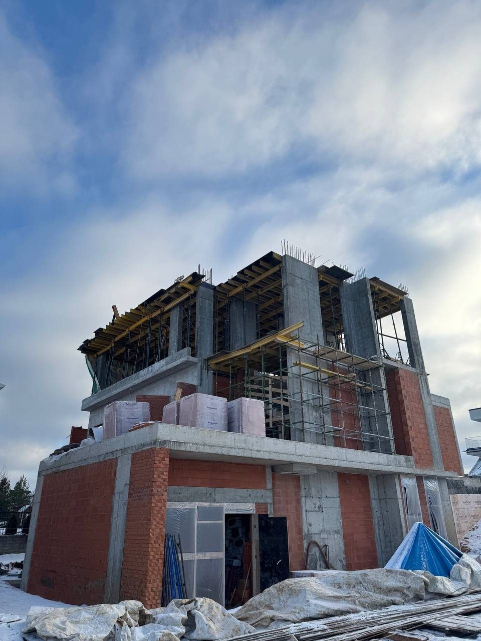 Современный загородный дом в популярном поселке. Ведутся работы по строительству коробки дома из керамического блока