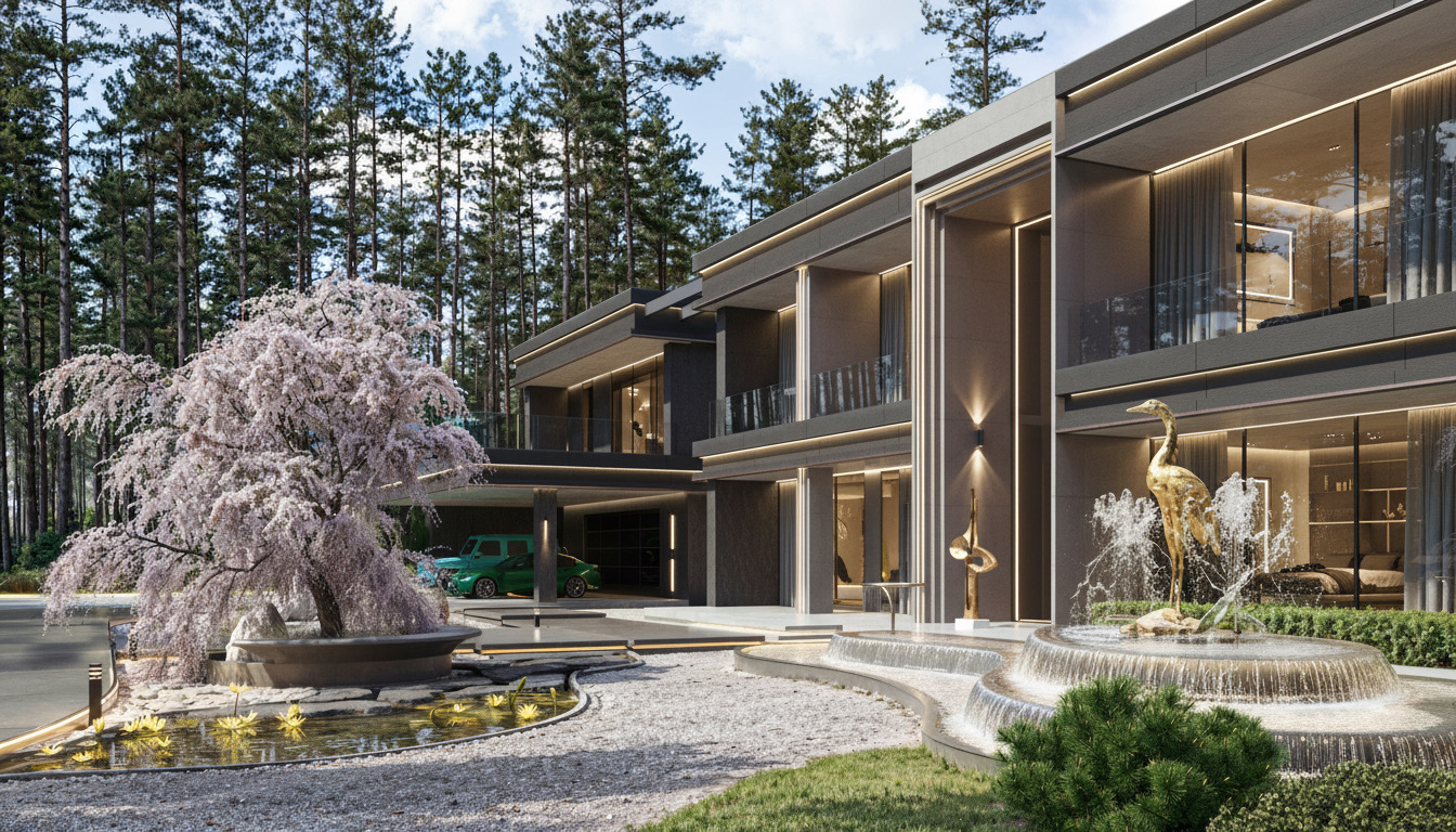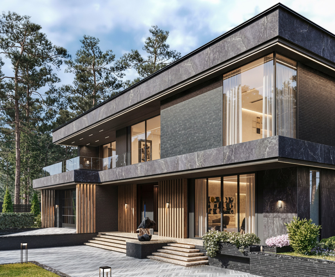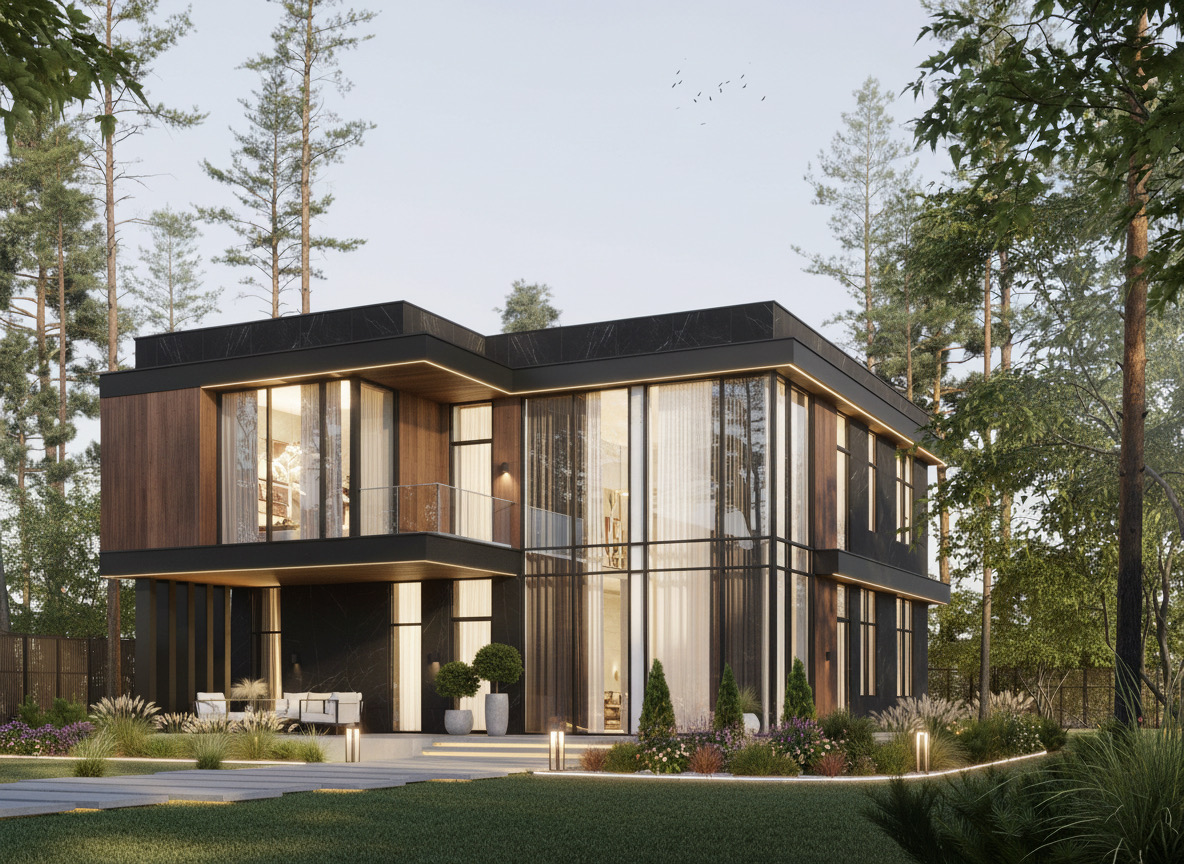 Завершены фундамент, дом, крыша. Проект включает просторные террасы и панорамные окна, создающие ощущение открытости и единения с природой.