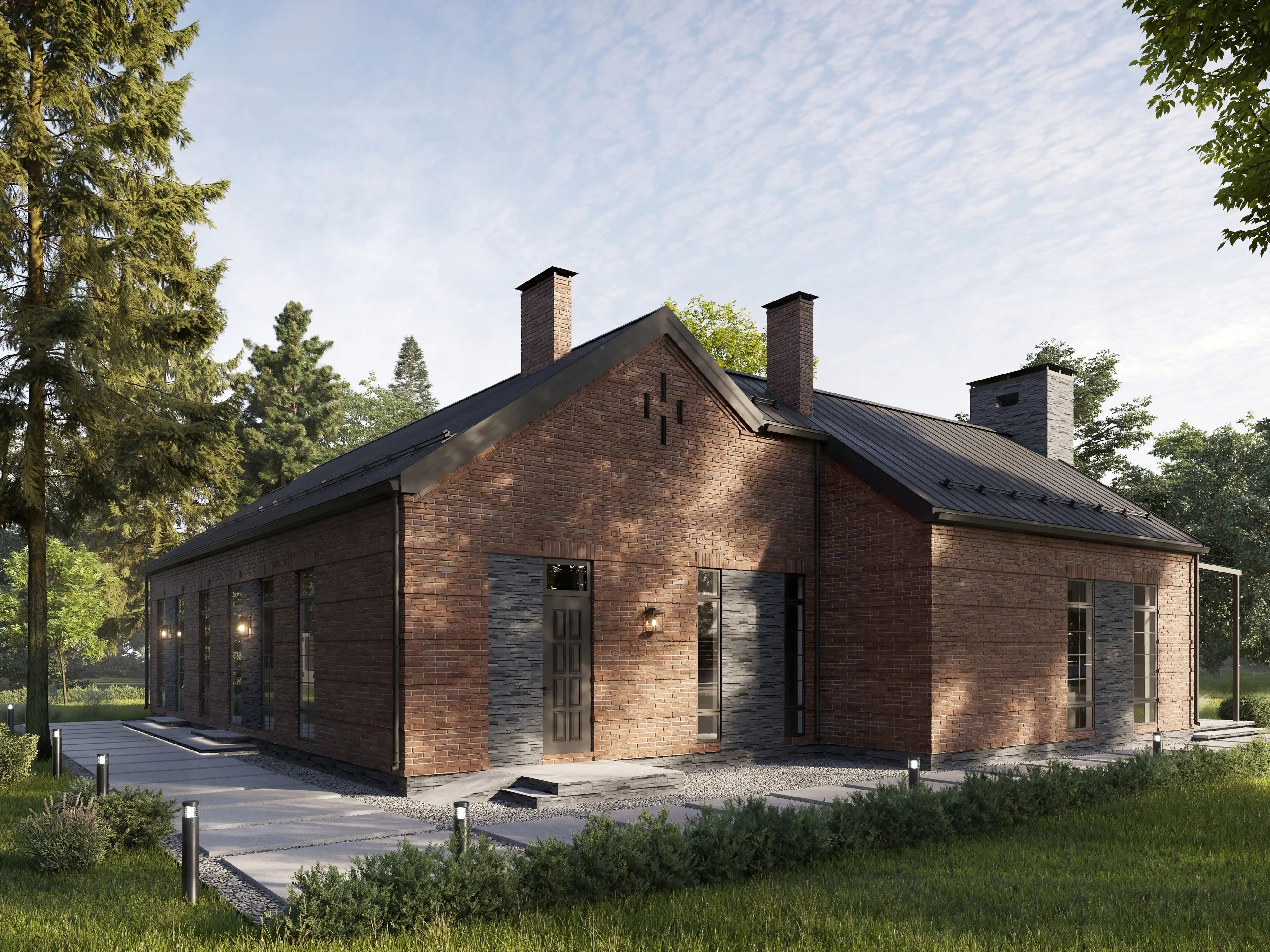 Крыши обычно покрывают черепицей или сланцем, а окна могут быть выполнены в классическом стиле с распашными створками, что усиливает общее впечатление старинного дома.
