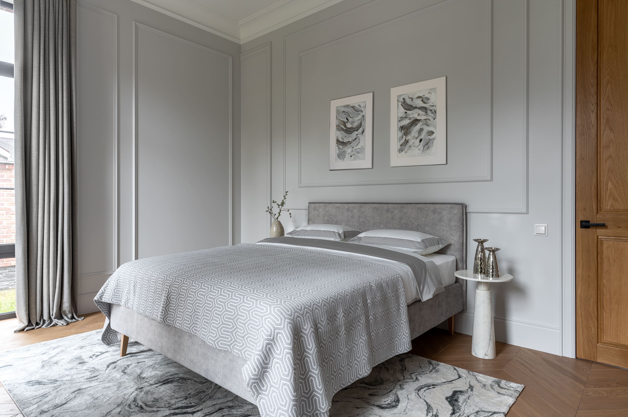 Цветовая палитра отделки варьируется от тёмно-коричневого до пастельных оттенков, создавая ощущение уединения и уюта.