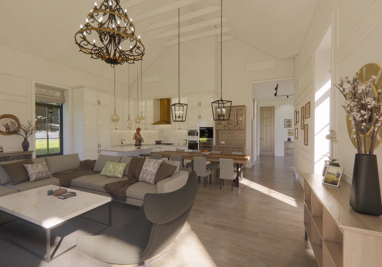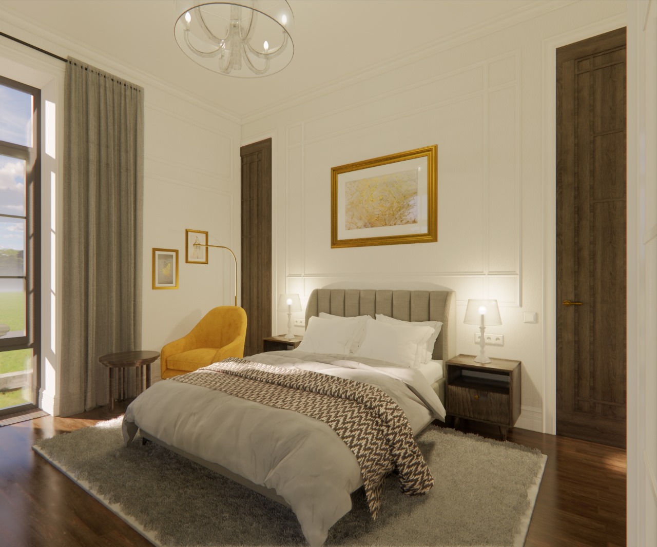 Принципы планировки, основанные на уюте и функциональности, создают тёплую, приветливую атмосферу. Внутреннее пространство организовано так, чтобы поддерживать связь между комнатами, при этом сохраняя возможности для уединения. Обилие деревянных элементов в интерьере и классическая мебель усиливают ощущение комфорта.