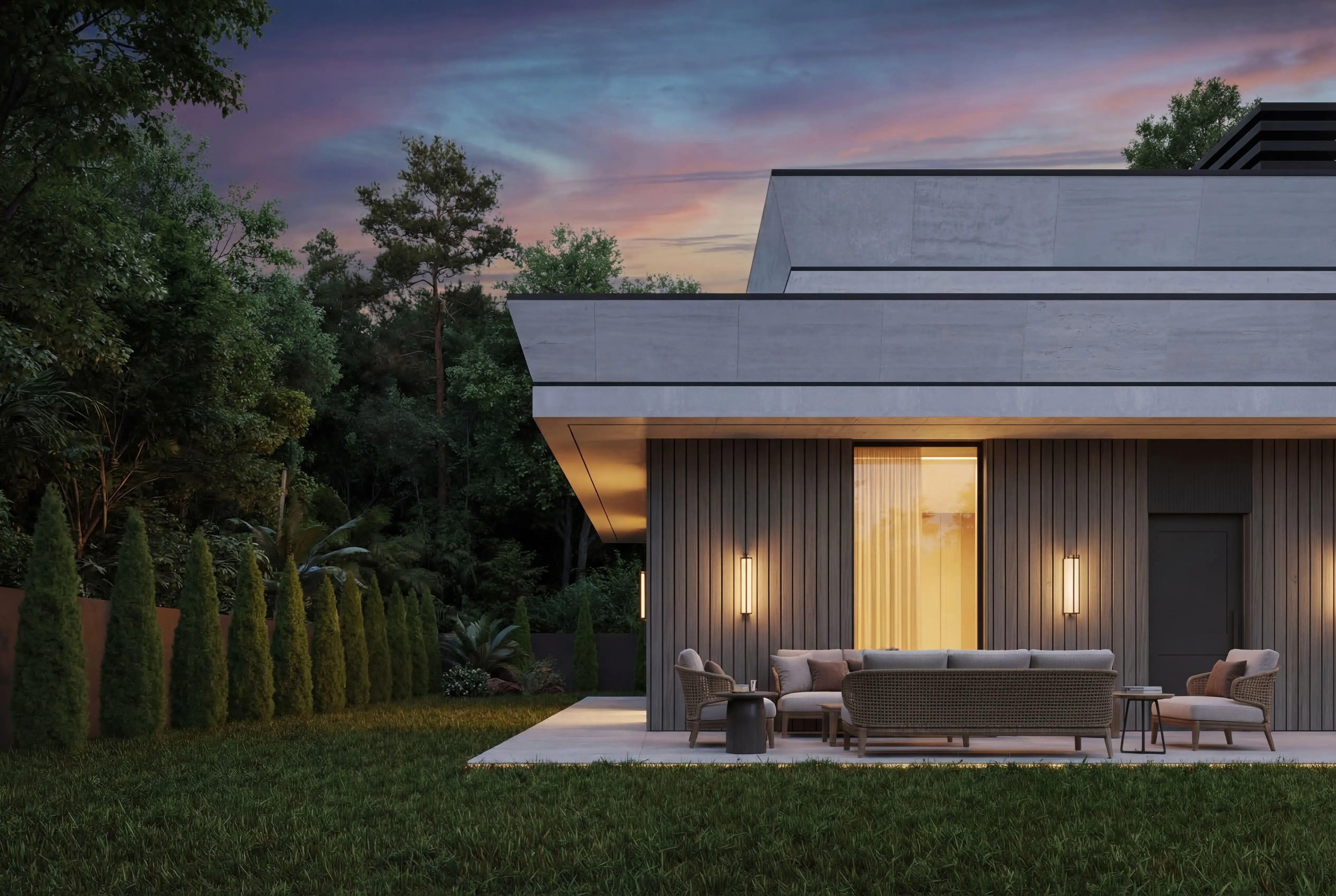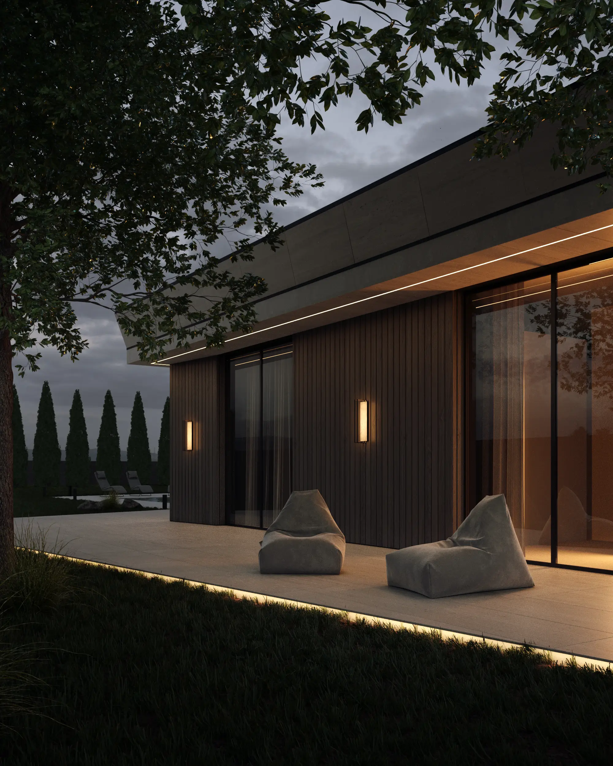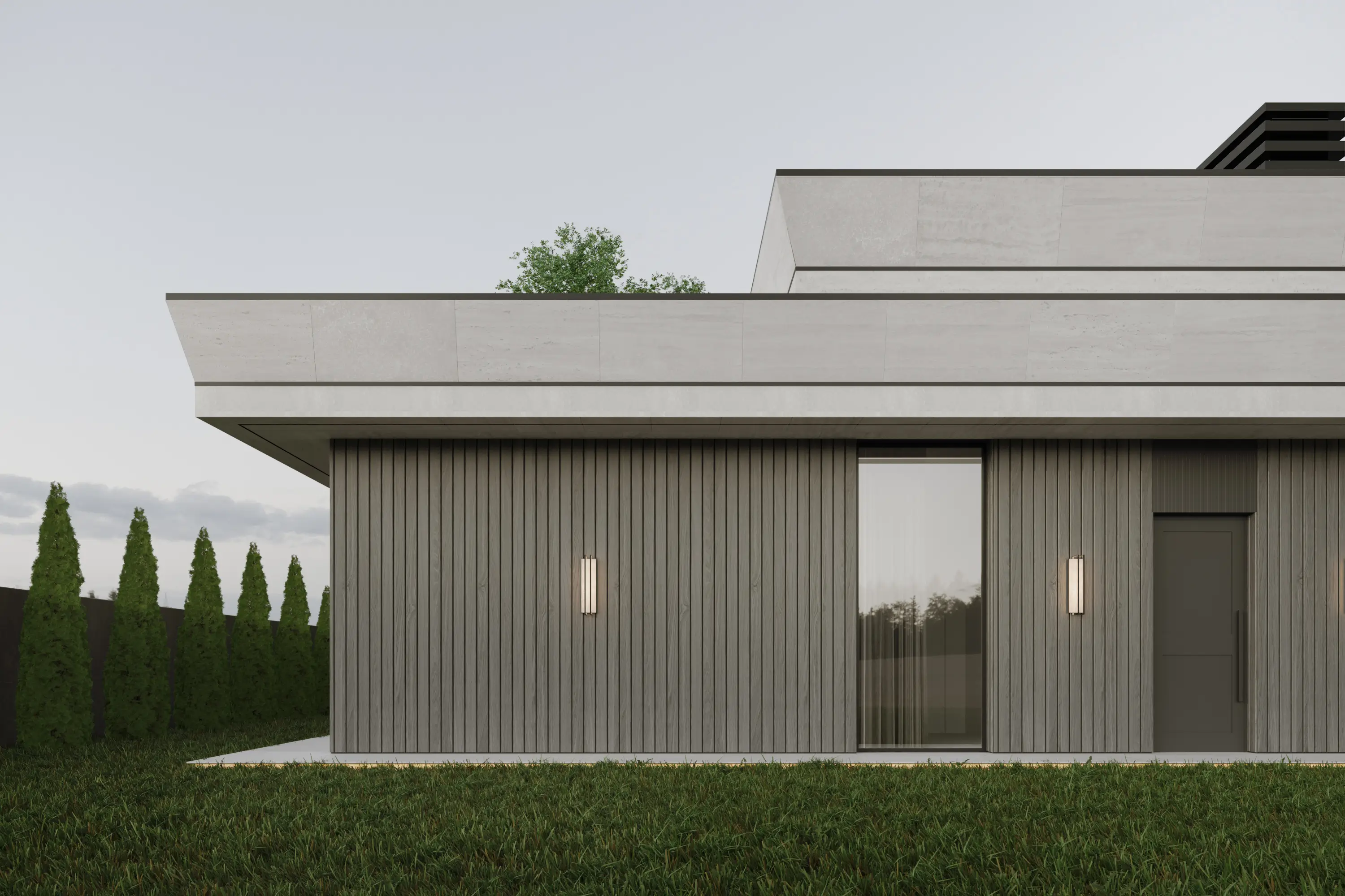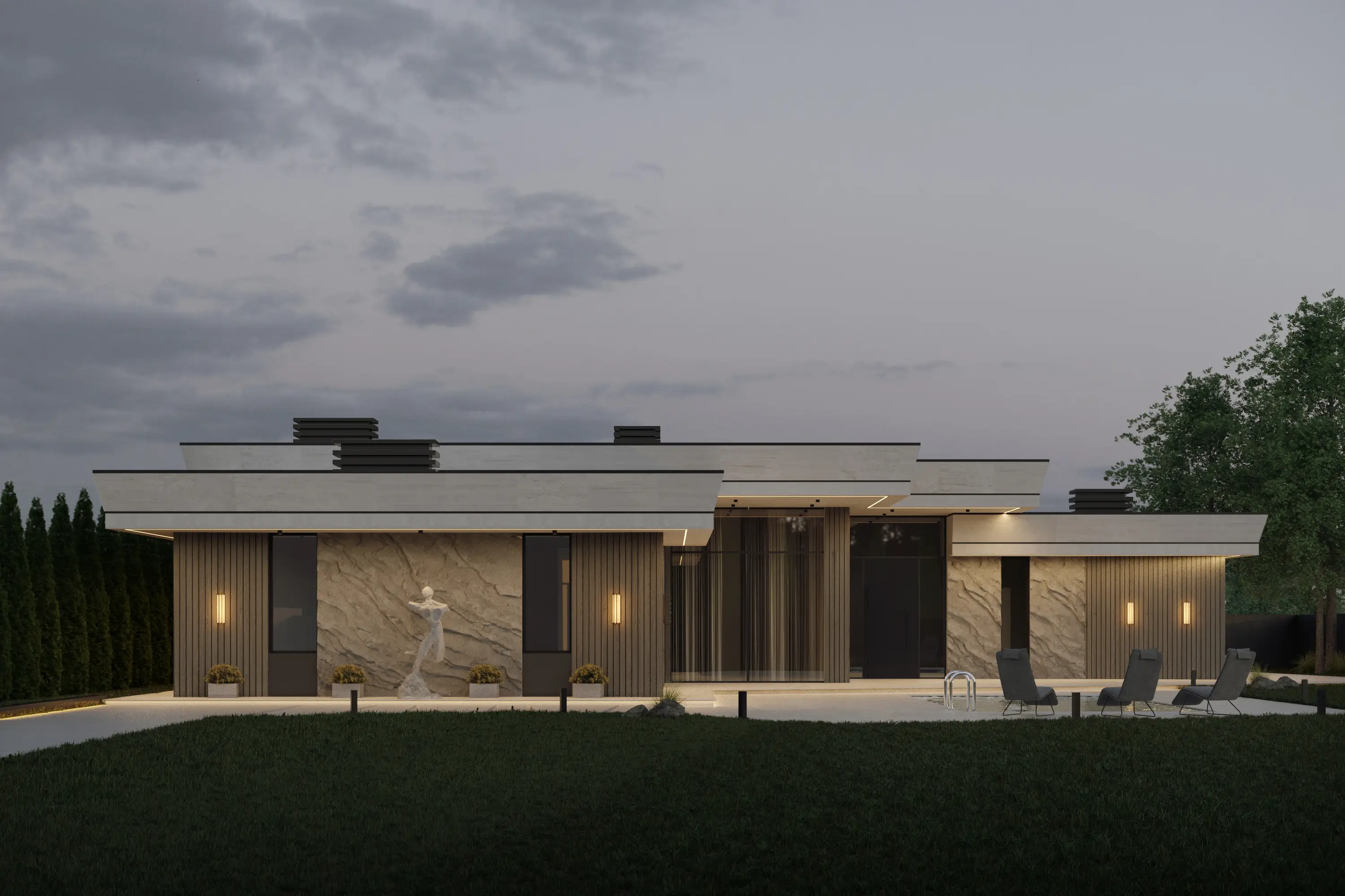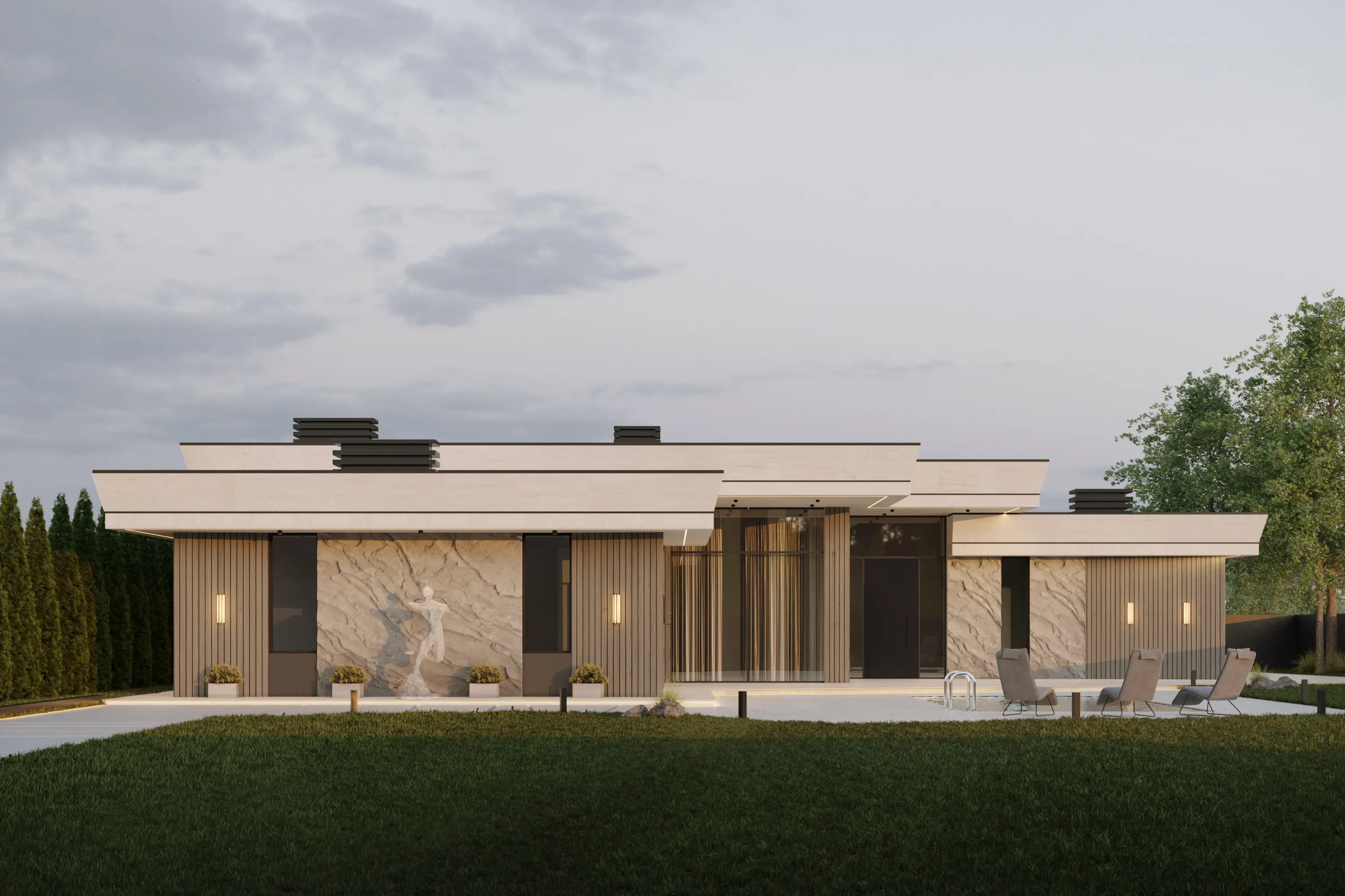 Зона BBQ (28.10 м²): Открытая зона для барбекю, идеальная для отдыха на свежем воздухе.