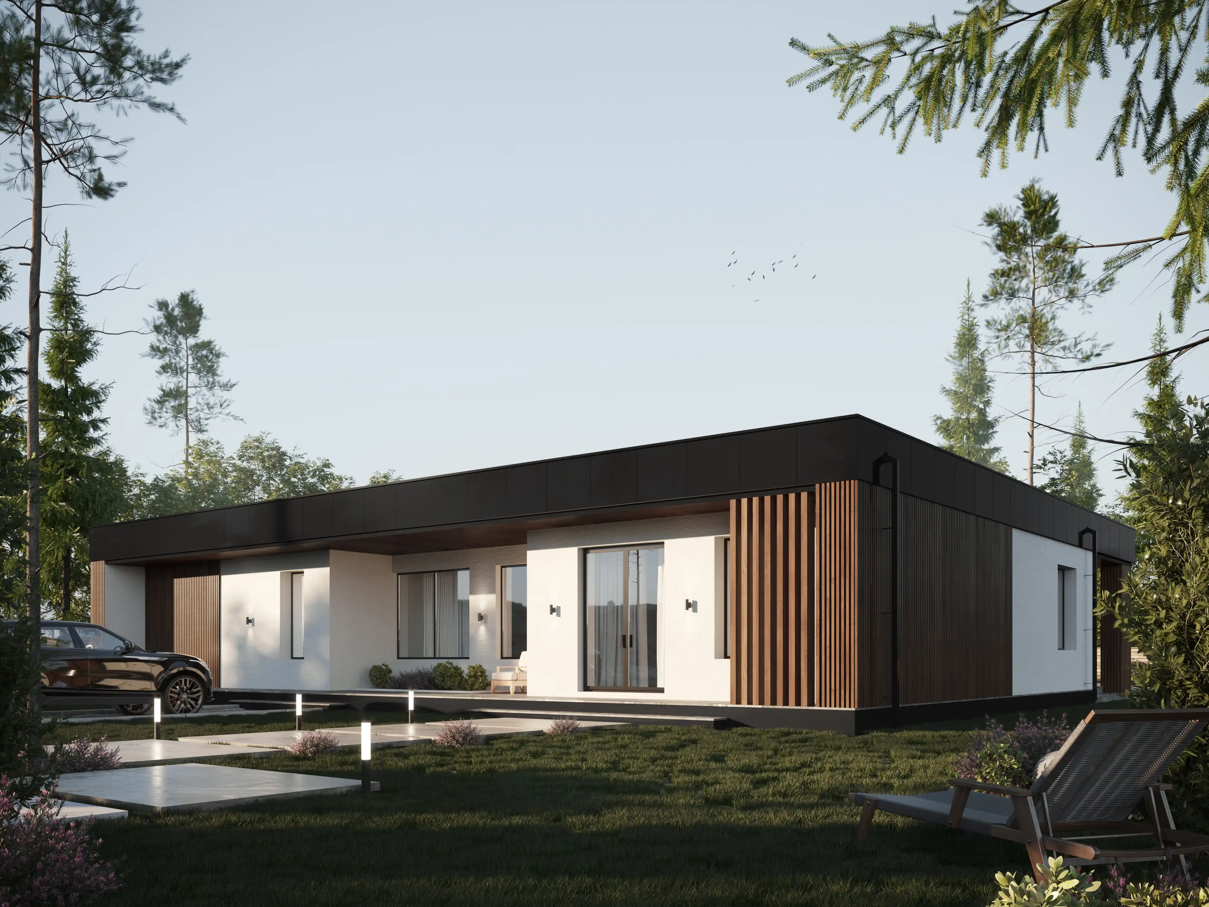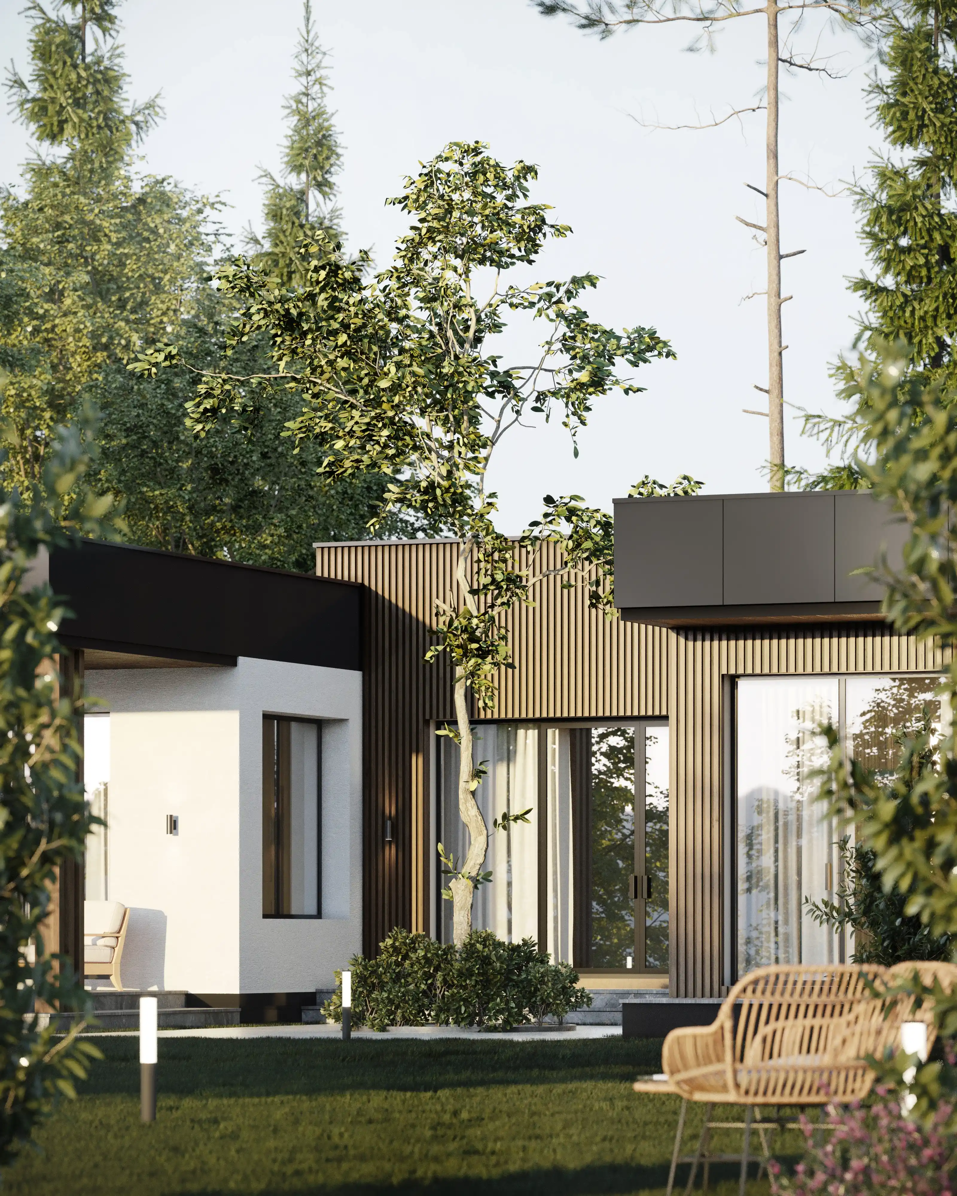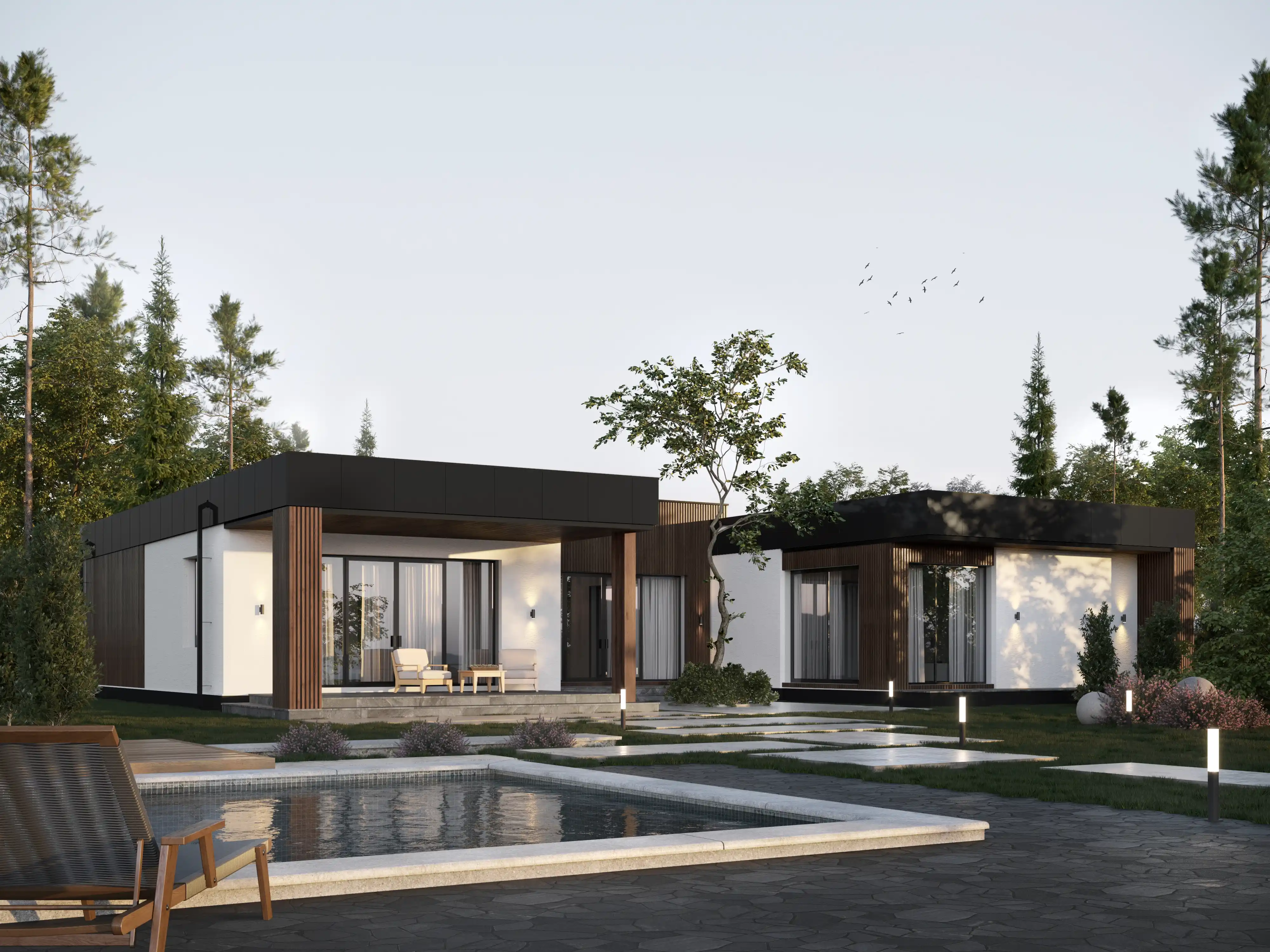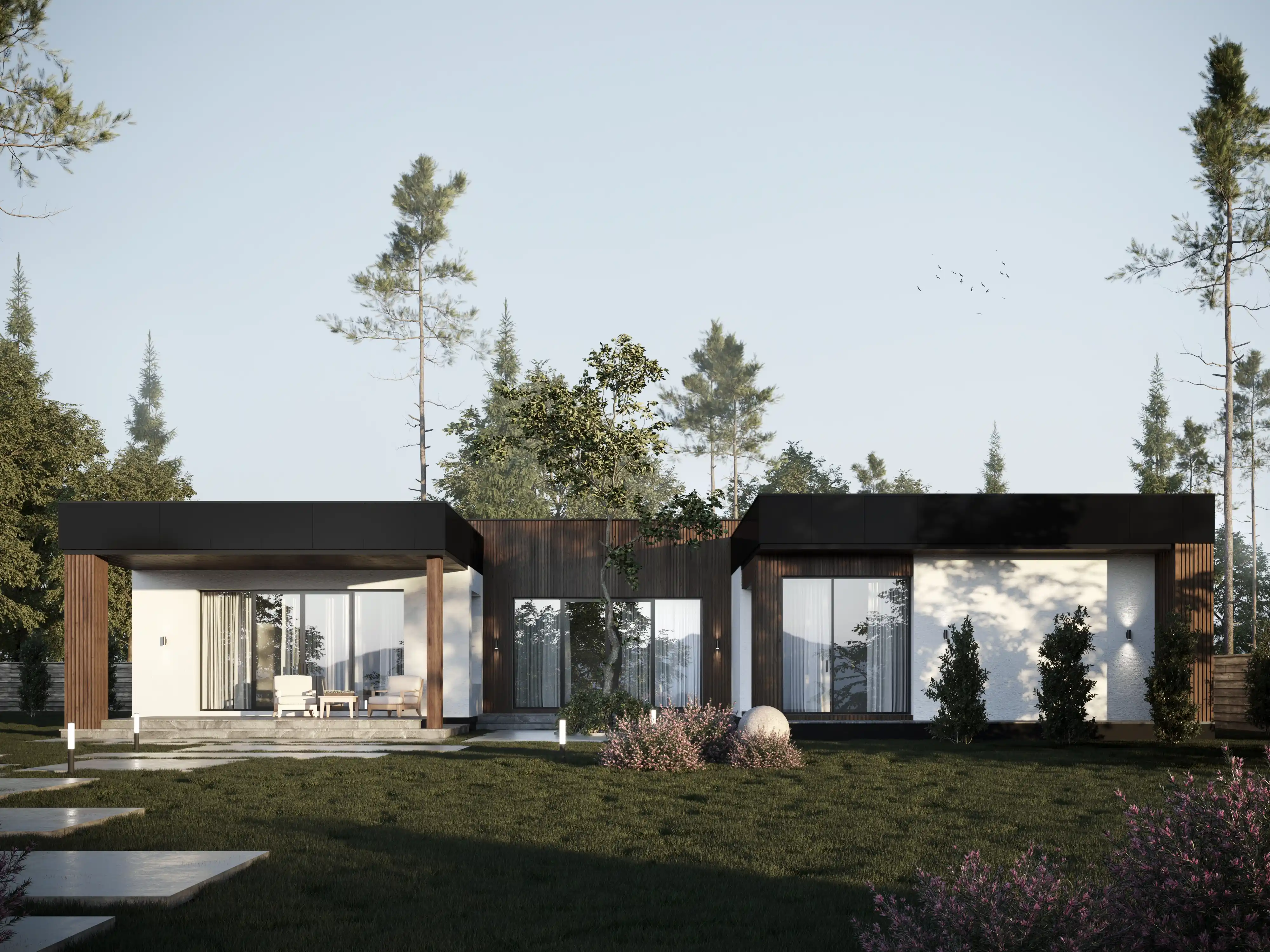 Стиль хай-тек отличается минималистичной эстетикой, функциональностью и использованием современных технологий. Прямые линии, открытые пространства и инновационные материалы создают впечатление простоты и совершенства. Дома этого стиля оснащены большими окнами, обеспечивающими обилие естественного света и визуальную связь с окружающей средой.