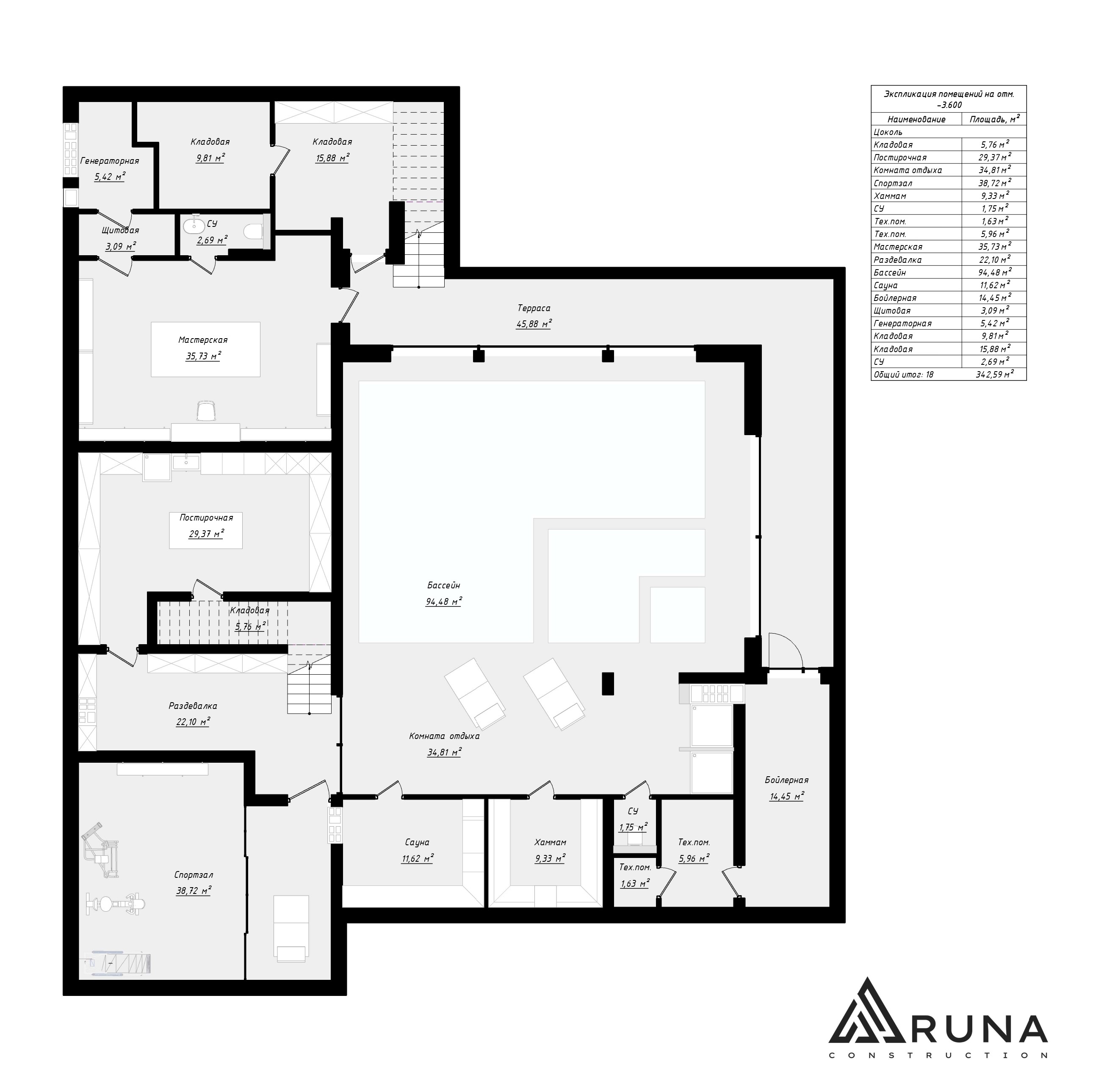 - Задняя часть — приватная зона с просторной террасой, спа - зоной, зимнем садом и ландшафтным дизайном, которая идеально подходит для отдыха и развлечений.